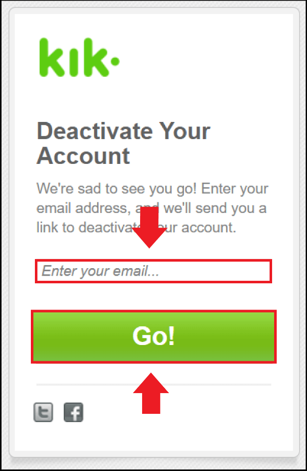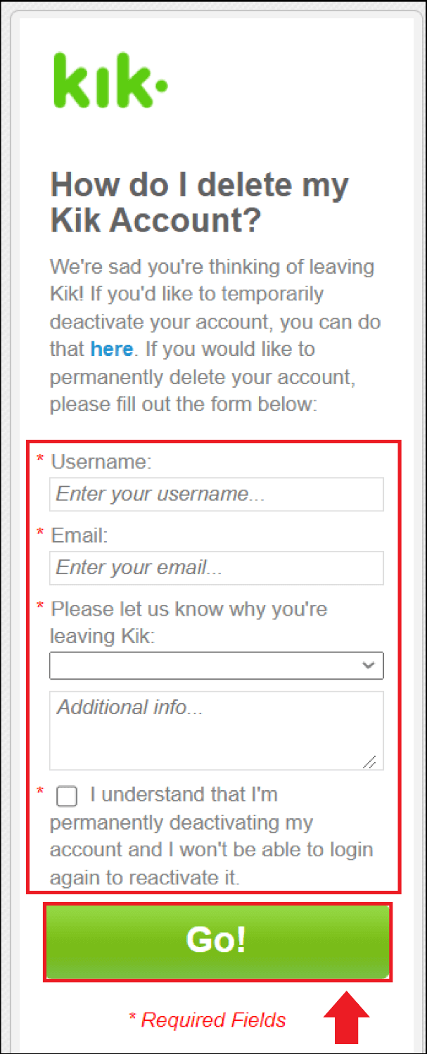 Schritt 3: Klicke auf „Go!“, um den Löschvorgang für deinen Kik-Account einzuleiten.