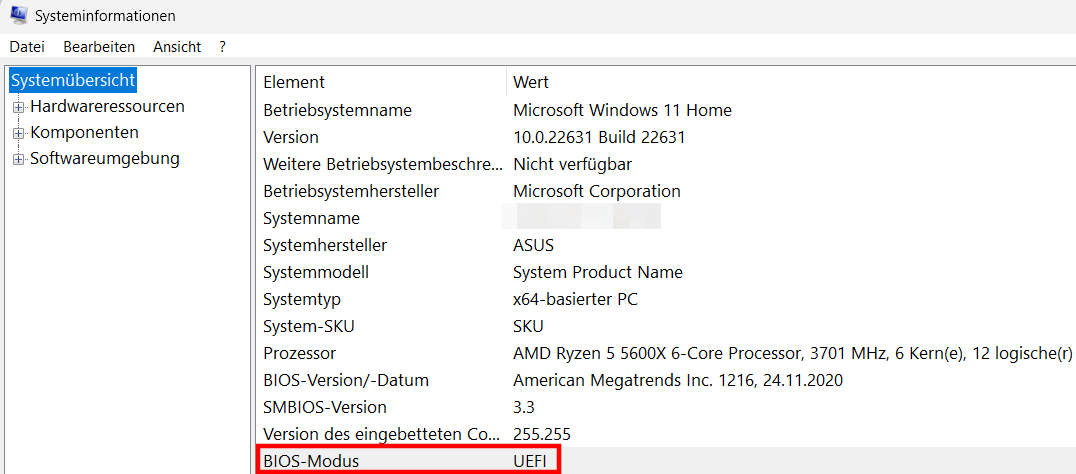 - BIOS-Modus auf UEFI kontrollieren