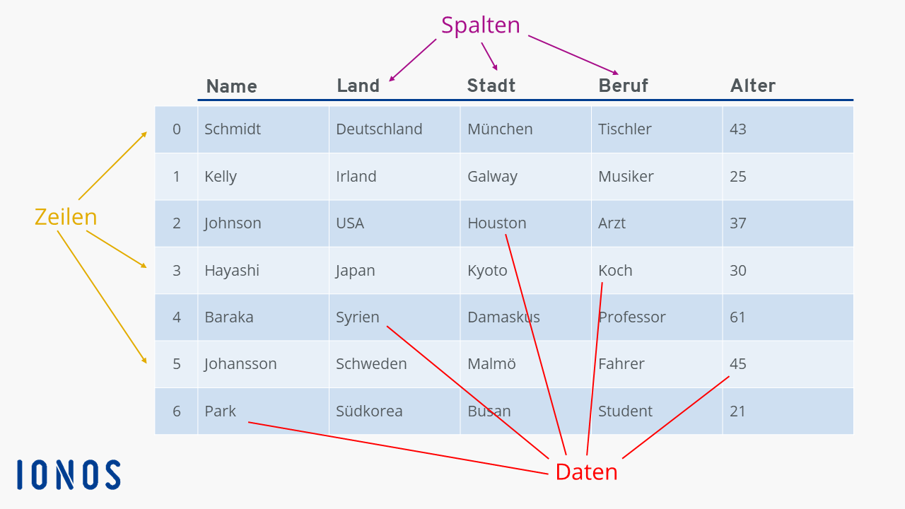 Der pandas DataFrame ist eine Python-Datenstruktur, mit der du Tabellen erstellen und bearbeiten kannst. Wir erklären dir den Aufbau dieser Struktur sowie die wichtigsten Methoden und Eigenschaften.