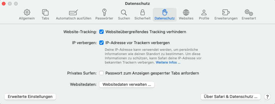 Der Apple-Browser Safari ist für Windows nur in einer veralteten Version verfügbar. Wir raten daher davon ab, Safari auf einem Windows-Rechner zu nutzen. Die folgende Anleitung bezieht sich deshalb auf die Safari-Version für macOS: